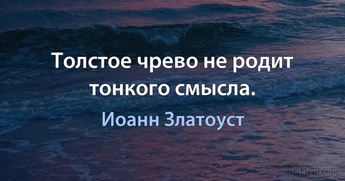 "Что такое - страсть чревоугодия? Потерявшее правильность естественное желание пищи и пития, требующее гораздо большего количества и разнообразного качества их, нежели сколько нужно для поддержания жизни и сил телесных, на которые излишнее питание действует противоположно своему естественному назначению, действует вредно, ослабляя и уничтожая их. Желание пищи выправляется простой трапезой и воздержанием от пресыщения и наслаждения пищею. Сперва должно оставить пресыщение и наслаждение: этим и изощряется желание пищи и получает правильность. Когда же желание сделается правильным, тогда оно удовлетворяется простой пищей. Напротив того, желание пищи, удовлетворяемое пресыщением и наслаждением, притупляется. Для возбуждения его мы прибегаем к разнообразным вкусным явствам и напиткам. Желание сперва представляется удовлетворенным; потом делается прихотливее и, наконец, обращается в болезненную страсть, ищущую непрестанного наслаждения и пресыщения, постоянно пребывающую неудовлетворенною. Г
