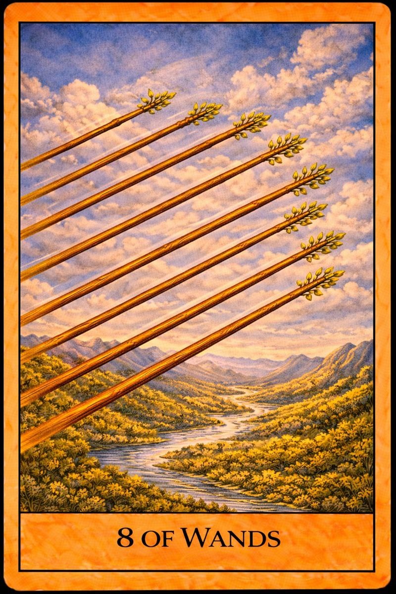 Дата: 18.03.2026 Общее описание дня: Восьмёрка Жезлов — день ускорения и стремительного развития событий. Процессы сдвигаются с места, информация приходит быстро, решения принимаются на ходу. Важно не тормозить поток, но и не терять ориентиры. Как использовать этот день: · Действуйте быстро, но осознанно. · Ловите возможности на лету. · Следите за направлением движения. · Избегайте суеты. Мантра на день: «Я в потоке и двигаюсь в нужном направлении.» Связь с Иерофантом (17.03.2026): После дня структуры и ценностей Восьмёрка Жезлов запускает движение. То, что было осмыслено и закреплено, сегодня начинает активно реализовываться. 🚀