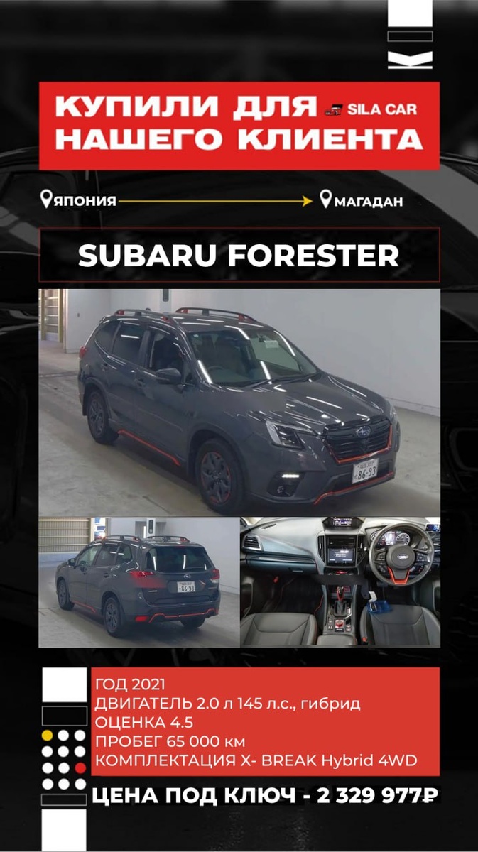 🔥 Никаких скрытых комиссий ❗️️Работаем строго по договору ┏ Реально честная комиссия: ┣ 50 000₽ на авто до 1 млн ₽ ┣ От 1 до 2,5 млн. ₽ - 70.000₽ ┗ От 2,5 млн. ₽ - 100.000₽ САМЫЕ ЧЕСТНЫЕ ЦЕНЫ НА РЫНКЕ ⬇️ Объём двигателя, см3 2000 Цена "на кнопке" ¥2 585 000 1 375 220,00 ₽ Комиссия экспортёра, транспортировка по Японии ¥100 000 53 200,00 ₽ Расходы по Японии, обход санкций ¥170 000 90 440,00 ₽ Фрахт $2 000 164 200,00 ₽ Итого стоимость по инвойсу ¥3 163 647 1 683 060,00 ₽ Ставка таможенного платежа 496 717,38 ₽ Утилизационный сбор* р.5 200,00 Брокерские услуги, СВХ, погрузо-разгрузочные работы, прохождение лаборатории р.65 000,00 Приёмка и забор автомобиля с СВХ, доставка до лаборатории, доставка до стоянки р.10 000,00 Честная комиссия СИЛА КАР р.70 000,00 Итого во Владивостоке: 2 329 977,38 ₽ 🔴Купил менеджер Марат 📞 +7(904)626-15-28 🔵 @SilaCarMarat 👉Для РАСЧЕТА СТОИМОСТИ АВТО жмите сюда💪 💻Самостоятельный расчет на нашем сайте: silacar.ru Или звоните: +79084532