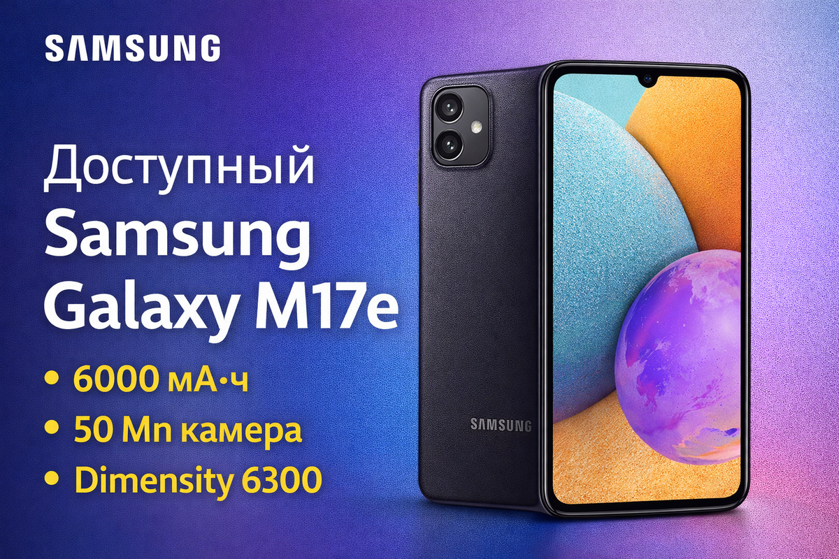 Иногда главная новость о новом смартфоне укладывается в одну строку: Samsung выпустила Galaxy M17e по цене $140, а внутри — Dimensity 6300, камера на 50 Мп и батарея на 6000 мА·ч. Для сегмента доступных устройств это важный релиз, потому что компания делает ставку сразу на три вещи, которые чаще всего ищут в таком классе: цену, автономность и базовую камеру. По данным 3DNews, Samsung представила Galaxy M17e как недорогой смартфон, и стартовая цена модели составляет $140. В новости отдельно вынесены ключевые характеристики: чип MediaTek Dimensity 6300, основная камера на 50 Мп и аккумулятор ёмкостью 6000 мА·ч. Официальная страница Samsung India также подтверждает, что Galaxy M17e 5G получил батарею на 6000 мА·ч и основную камеру на 50 Мп. Там же указано, что устройство относится к линейке Galaxy M и продвигается как доступная модель с поддержкой 5G. В публикации 3DNews отмечается и платформа устройства: Galaxy M17e построен на MediaTek Dimensity 6300. Для читателя это важная деталь,