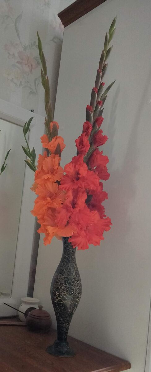 Да, я готова им поклониться, да и кланяемся постоянно. То чтобы посадить, то прополоть, то выкопать. Но я действительно благодарна им не только за удовольствие, какое получаем от их неповторимой красоты, а ещё и за то, что они очень выручали нас в 90-е. В 1992, когда зарплату на многих предприятиях ВПК задерживали, а у меня были две дочки школьницы и мама пенсионерка, которой пенсию тоже по полгода не платили, наступил момент, когда брать в долг было уже не у кого. Я запасливая, у меня были крупы, консервы, свежая картошка подрастала в огороде, но ежедневные продукты - хлеб, молоко, яйца купить было не на что. И тут у меня зацвели гладиолусы! Я срезала до 40 штук, с трудом везла это богатство в давке огородного автобуса и отправляла девочек на ближайший рыночек. Мне самой было стыдно торговать, никогда этим не занималась. Дочки стояли с ведром гладиолусов в ряду с другими торговцами, а я наматывала круги неподалеку. На одних только цветах мы тогда продержались 2 недели до зарплаты.