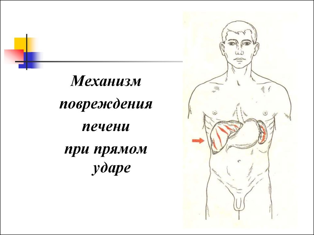 Печень покрыта тонкой капсулой, под которой находится богатая сеть кровеносных сосудов. При сильном механическом воздействии (удар, сдавление) возможны повреждения как самой капсулы, так и паренхимы органа. Особенно опасны удары в область нижних рёбер, где печень наименее защищена.Последствия удара в печень