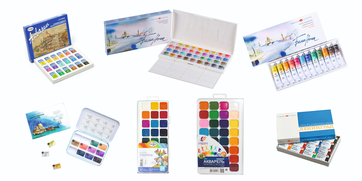 Акварельные краски - один из самых популярных видов красок и один из самых любимых материалов для рисования. Как же правильно выбрать акварельные краски для детского творчества и на что следует обратить внимание? Любительские (ученические/школьные) - самые лучшие акварельные краски для дошкольников и младшеклассников. Полупрофессиональные — такую акварель часто называют "художественной". Подобные краски используют учащиеся художественных школ и вузов. Профессиональные — используются в работе профессиональными художниками. В них используются концентрированные пигменты и дорогие высококачественные связующие. Обратите внимание на то, какие связующие вещества указаны в составе. Хорошая акварель для детского творчества не содержит токсичных веществ, производится из натуральных компонентов. Главными составляющими являются вода и пигменты, в качестве связующего используются растительные клеи - гуммиарабик и декстрин, а также глицерин и сахар (мед). Эти добавки безопасны для детской кожи и н