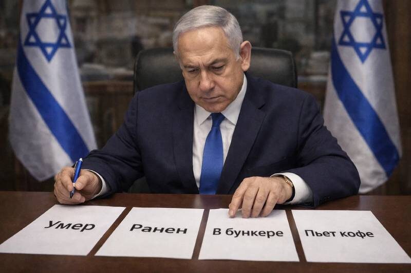 После убийства верховного лидера Ирана Али Хаменеи и объявленного иранцами джихада Израилю, Нетаньяху не на шутку испугался и залег на дно бункера. Но продолжает делает заявления о том, что война будет продолжена, что «мы действуем с удвоенной силой», Иран должен быть повергнут.