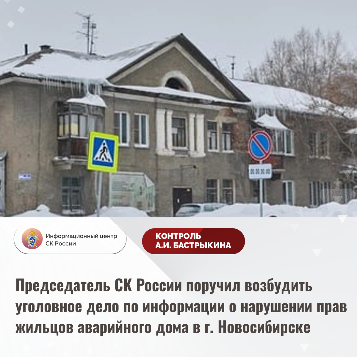Председатель СК России поручил возбудить уголовное дело по информации о нарушении прав жильцов аварийного дома в г. Новосибирске