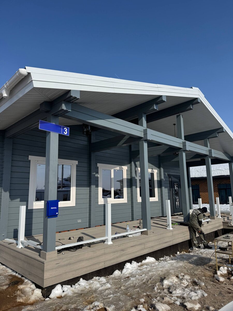 ! Всего за одну неделю мы прошли путь от пустого участка до момента, когда дом обретает настоящую душу. Сейчас на объекте самый приятный этап — укладка террасной доски. И это, честно говоря, наша любимая стадия. Когда получается вот такая красота ☀️ Работать быстро, но качественно — наш принцип. Одна неделя интенсивной работы, и результат говорит сам за себя. Полный обзор на террасу выложили в инстаграм, совсем скоро сдадим объект и поделимся итоговыми фото!