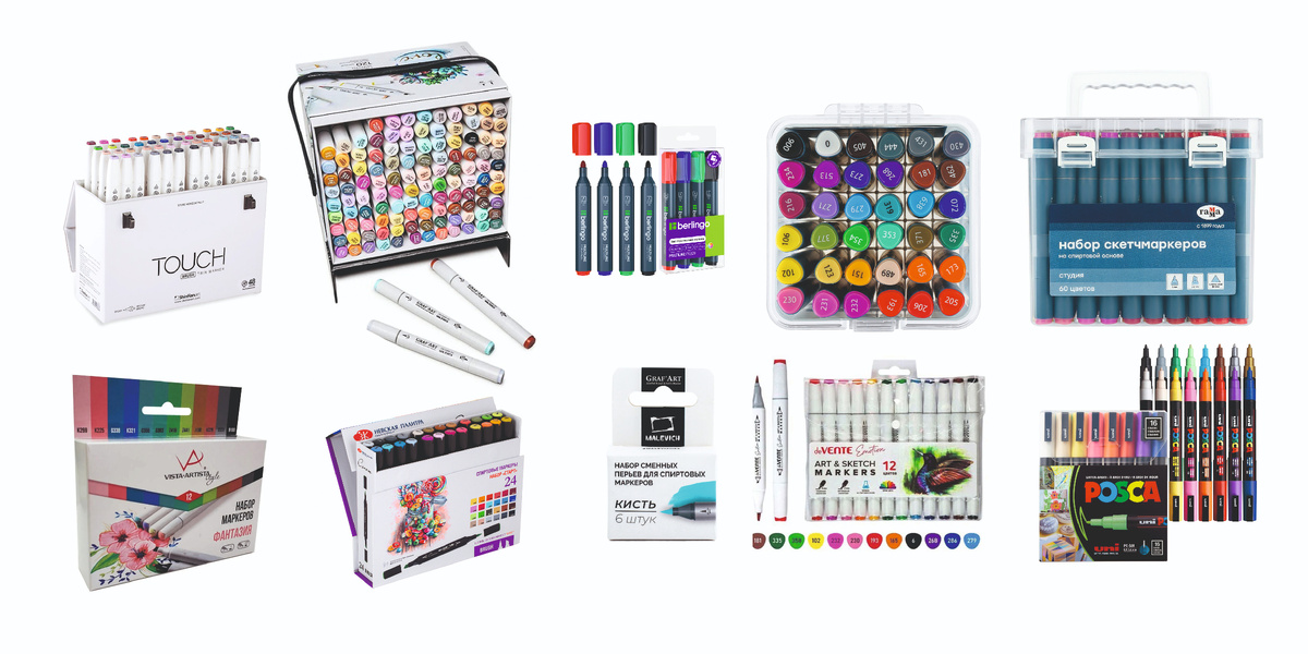 Маркеры - современный и очень полезный материал для художника. С их помощью можно создавать небольшие зарисовки и быстрые скетчи, а также полноценные иллюстрации разных форматов. Как же правильно выбрать маркеры для детского творчества и на что следует обратить внимание? От формы стержня зависит, какие линии будет давать маркер и какого эффекта можно достичь с его помощью. Есть три основных разновидности. Цветовая гамма обычно включает в себя от 12-36 цветов и может доходить до 200-300 оттенков. Выберите набор с достаточным количеством цветов для ваших целей. Иногда лучше иметь набор с меньшим количеством, но качественных маркеров, чем большой набор низкого качества. Обратите внимание на бренды, которые зарекомендовали себя на рынке. Качественные маркеры обычно имеют пластиковый корпус с двумя наконечниками, насыщенные цвета и большой выбор цветовой палитры. Присмотритесь к маркерам таких производителей, как Гамма, Невская Палитра, Vista-Artista, Touch, Posca, Vente, Berlingo, Малев