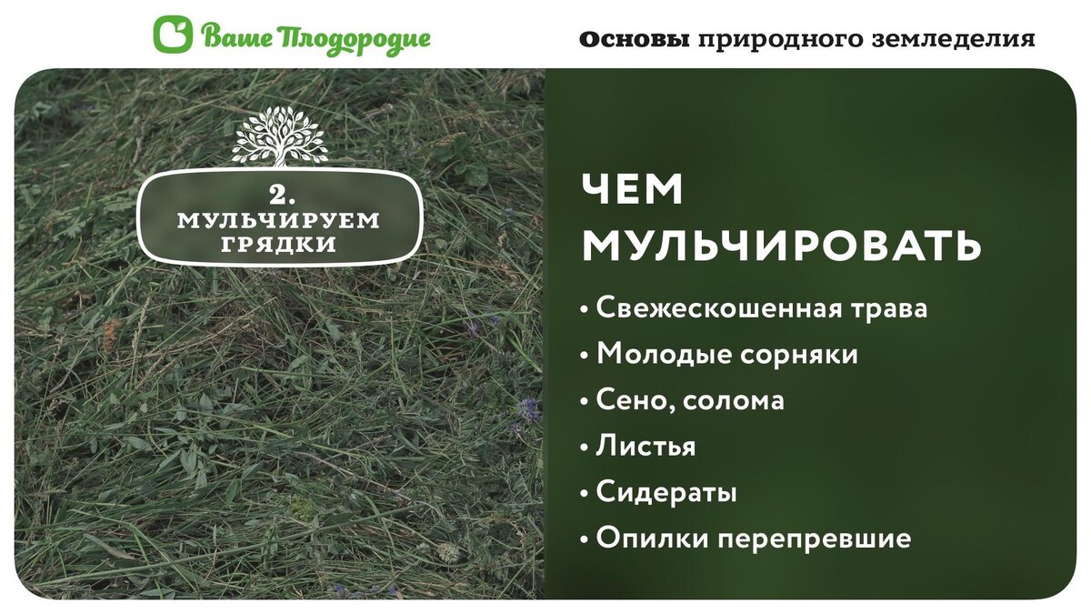 Идеальной мульчи «для всего» не существует. Есть правильно подобранная под задачу — и тогда грядки работают сами. Разберём 7 вариантов. Коротко, по делу. ⠀ 1. Свежескошенная трава — Быстро даёт питание — Работает почти как компост — Бесплатно и всегда под рукой Минус один: требует внимания. Траву нужно подвялить, иначе начнёт преть. Вывод: отличный вариант для быстрой подкормки. ⠀ 2. Сено — Быстро разлагается — Хорошо кормит почву — Удобно укладывать Минус: может быть с семенами сорняков. Вывод: один из самых универсальных вариантов. ⠀ 3. Солома — Долго лежит — Медленно и стабильно отдаёт питание — Хорошо держит влагу Минус: эффект не быстрый. Вывод: идеально для многолетников и «ленивых» грядок. ⠀ 4. Листва — Бесплатно — Улучшает структуру почвы — Привлекает червей Минус: мало питания и может слёживаться. Вывод: хороша как база, но не как единственный слой. ⠀ 5. Сидераты (скошенные) — Много зелёной массы — Сильная азотная подпитка — Быстрое восстановление почвы Минус:
