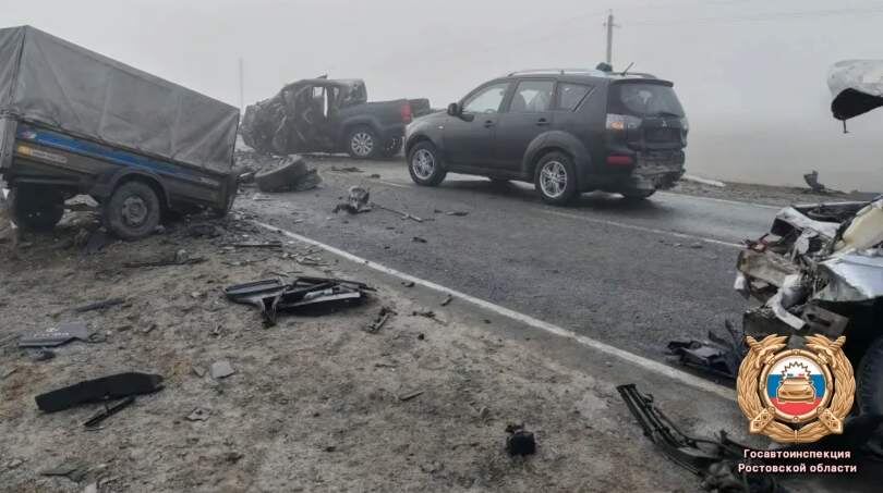 В Ростовской области обгон на трассе спровоцировал страшное ДТП с участием четырех автомобилей, погибли два водителя