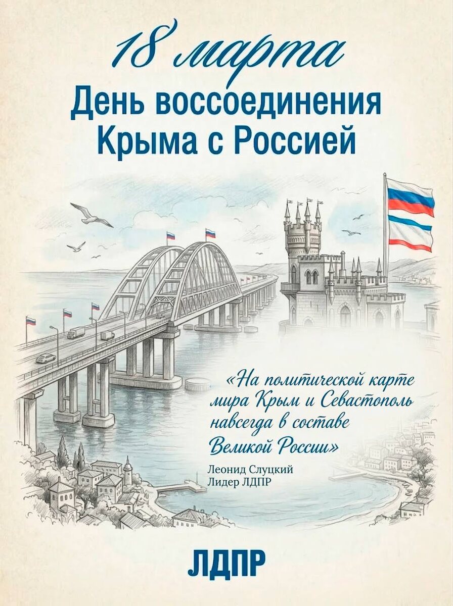 Этот день символизирует не только территориальную целостность, но и единство нашего народа. В 2014 году, когда крымчане сделали выбор, они продемонстрировали свою приверженность к русским ценностям и культуре, к родной земле. 💪ЛДПР всегда поддерживала стремление народов к самоопределению и справедливости. Мы уверены, что воссоединение Крыма с Россией — это историческая справедливость, восстановление исторической правды. Этот шаг укрепил нашу страну, объединив миллионы людей, которые гордятся своей принадлежностью к родной земле. Патриотизм — это не просто слова, это действия. Мы должны помнить о тех, кто защищает наши интересы на передовой, и поддерживать их морально и материально. Важно воспитывать в молодежи дух патриотизма, уважение к истории и культуре своей страны. 🙌Сегодня мы отмечаем этот день с гордостью и надеждой на будущее. Пусть в наших сердцах всегда живет любовь к Родине, а в делах — стремление к процветанию нашей страны.