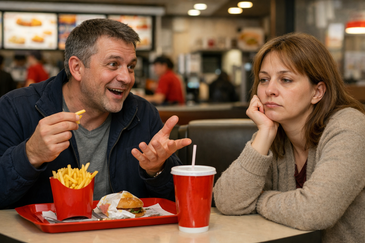 Анна смотрела на Олега через стол в кафе «Вкусно — и точка». Он увлеченно макал картошку в кетчуп и рассказывал, что его начальник — дурак, а проект, который он придумал, спасет компанию, если они, конечно, одумаются и дадут ему карт-бланш.