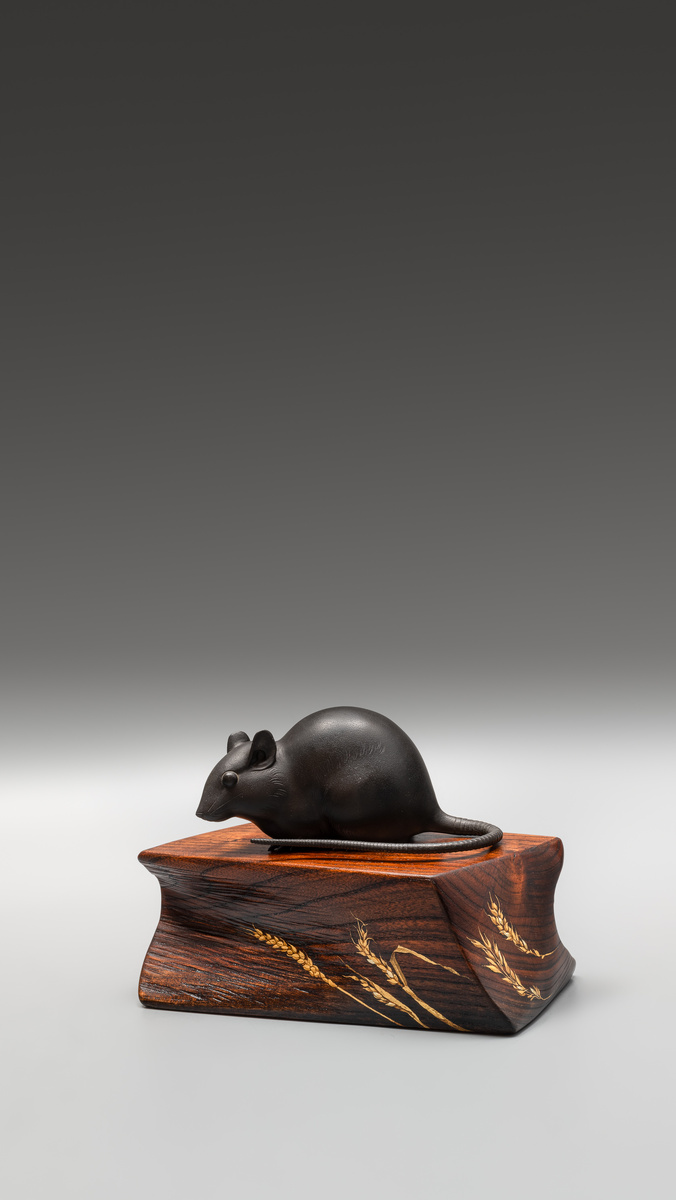 Фигура грызуна - превосходная, как это обычно бывает у японских мастеров-анималистов. Практически эталонная милая зверюшка. Японцы вообще -мастера воспевать мАлое. Объяснению этого мы можем найти в географии пополам с геологией. Ширина главного острова архипелага, Хонсю, варьируется от 50 до 230 километров. Не смотря на общую вытянутость, (гряда островов растянулась почти на 3000 километров) язык не повернется назвать его бескрайним. Все равно есть ощущение окружённости со всех сторон. Знаете, это наверное что-то психологическое. Мы не можем мысленно представить себе границы, но, интуитивно чувствуем конечность территории. Япония, она такая, малогабаритная. И вот это ощущение берега, ограничительной линии со всех сторон, оно чувствуется. И, в том числе, с этим и связано стремление японцев рассматривать небольшое и видеть красоту в малом. Интересно было бы свести в одной комнате философа-художника из Непала, где что ни гора, то семитысячник, и поэта из Японии, настраивающего свои художе