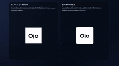 Прошлая неделя. Сижу, дорабатываю наш сайт. Вайбкоджу прямо в процессе: что-то правлю, что-то генерирую, смотрю как код складывается в реальном времени. Голова в задаче, кофе остывает, за окном уже темно. И тут вспоминаю про кубик. Несколько дней висела задача: сделать интерактивный логотип для подвала сайта. Наш фирменный куб, живой, с физикой, чтобы реагировал на курсор. Простая задача, которая умеет превращаться в бесконечные итерации. Ты видишь одно, на экране выходит другое. Объясняешь снова. Снова не то. Раз уже в коде сижу, попробую сам. Открываю инструмент и начинаю разговаривать. Рассказываю что хочу: как куб должен двигаться, как реагировать на курсор, что должен почувствовать человек когда смотрит на него. Говорю про материал, про свет, про ощущение веса. Через час две готовые версии. Одна на JS, другая на Three.js с полноценным 3D. Открываю, смотрю. Сижу минуту молча. Потому что это именно то, что было у меня в голове. Не похоже. Именно то. Вайбкодинг дал мне возможность пр