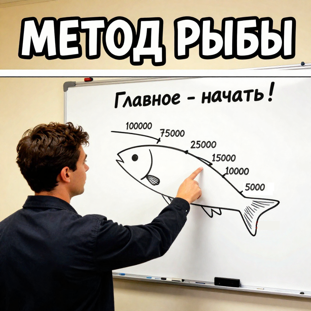может, и что посерьёзнее. Чтобы настрой не падал, я использую дробление цели. На работе в отделе качества я подслушал метод устранения проблем — коллеги называли его «метод рыбы». Суть метода: Практическое применение: Я уверен: по достижении каждой промежуточной цели вы будете радоваться, как будто достигли глобальной! Картина мира станет более радостно