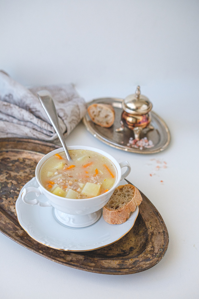 Достаточно необычная технология приготовления у этого супа. Отдельно варится пюре из сельдерея, которое потом загущает суп. Вместо булгура можно взять резаные злаки, как в моем случае, это пшеница и овес. Ингредиенты на 6 порций: