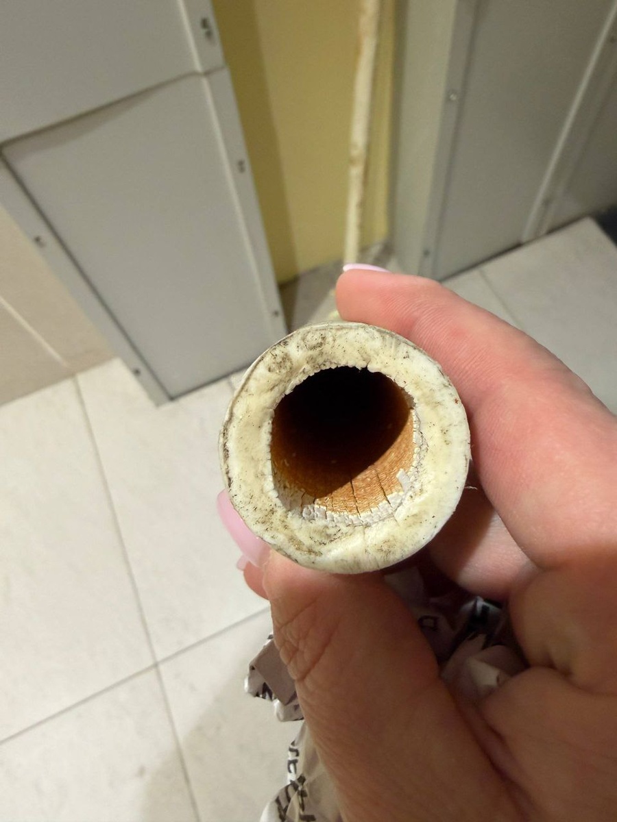 ? 💧 Как вы уже могли догадаться, ничего хорошего... Некоторые недобросовестные застройщики при строительстве многоквартирных домов применяют для трубопровода горячего водоснабжения (ГВС) полипропиленовые трубы "для горячей воды" (так их преподносят торговцы и производители), в характеристиках которых честно указано: Макс температура рабочей среды 60 °С При этом согласно СанПиН 2.1.3684-21, утверждённым постановлением Главного государственного санитарного врача РФ от 28.01.2021 № 3, температура горячей воды в местах водоразбора централизованной системы горячего водоснабжения должна быть не ниже +60 °C и не выше +75 °C. То есть, данные трубы априори будут работать при температуре выше максимально допустимой для них по техническим характеристикам. Экономия в цене — всего 16 % (цены взяты с официального сайта одного из крупных поставщиков полипропиленовых труб в Москве). Что становится с такими трубами через пару лет эксплуатации, можно увидеть на третьем фото. "Счастливые" обладател