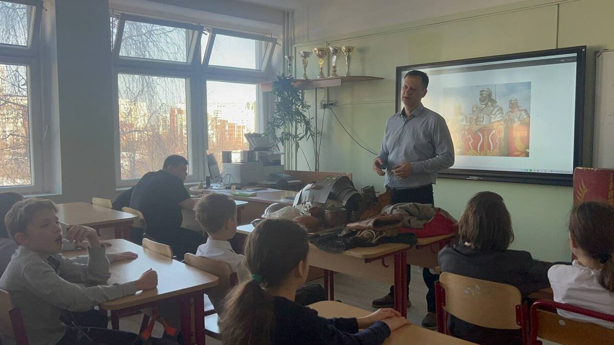 ⚔️ 🏛️ В 5 «Г» прошёл необычный урок истории — вместо обычного занятия ребята отправились в эпоху Древнего Рима. 🛡️ В гости пришёл Александр Иванович Ульянов, который занимается реконструкцией исторических событий. Он рассказал много интересного о жизни римских легионеров. ⚔️ Школьники увидели настоящее обмундирование и оружие, смогли рассмотреть детали и задать вопросы. ✨ Урок получился ярким и запоминающимся — таким, о котором точно будут вспоминать ещё долго. Больше полезного контента, эксклюзивных материалов и возможность задать вопрос — в нашем МАХ. #ДОНМ #ШколыКолледжиМосквы