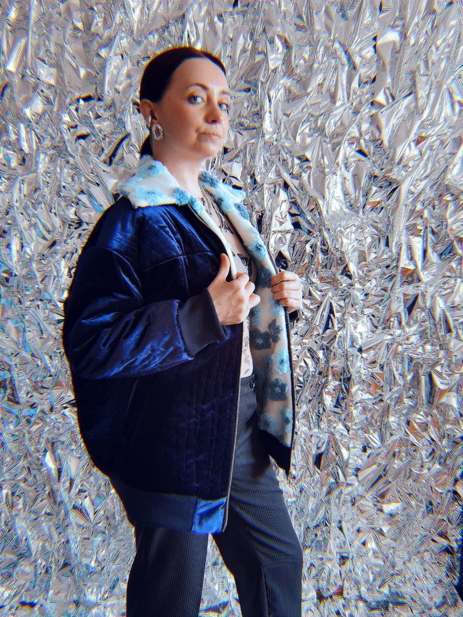 Ну вот, курточка и готова, ура! ✨ Бархатное синее роскошество, просто глаз не оторвать