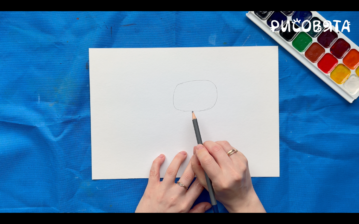 Наверно, многие знают выражение "Крокодильи слезы". А мы их нарисуем! Меня зовут Наташа, и я создаю пошаговые уроки рисования для детей, а также уроки с аппликациями и поделками. Каждую неделю выходит новая тема, подпишитесь, чтобы не потерять и приступим к рисованию! Сегодня у нас необычный рисунок с крокодилом - мы не просто его нарисуем, а еще и нарисуем целое море слез, которое он наплакал. Но, нам нельзя оставлять крокодила в расстроенных чувствах, поэтому, на следующем занятии мы нарисуем воздушный шар пальчиками и отправим крокодилу, чтобы он перестал расстраиваться и плакать! Для рисунка нам понадобится: лист акварельной бумаги, простой карандаш, ластик, акварель, кисточки и баночка с водой. Начинаем рисовать! Сначала нарисуем прямоугольник со скругленными углами - это будет нижняя часть головы. Рисуем в верхней части листа, чуть правее середины. Нарисуем верхнюю часть головы крокодила. Дорисуем прикрытые глаза, брови и зубастую пасть. Рисуем туловище крокодила, переходящее в х