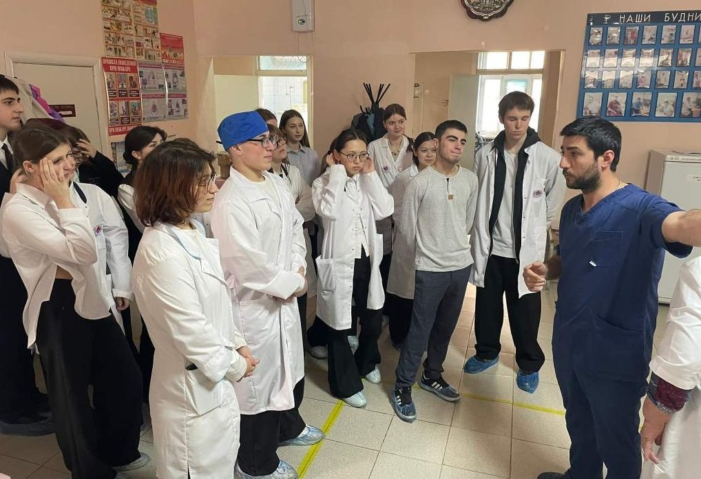 Учащиеся медицинских классов Веселовской школы №1 посетили хирургическое отделение Веселовской районной больницы. 17 марта ученики 10″Б» и 11″Б» медицинских классов Веселовской школы № 1 получили уникальную возможность заглянуть за кулисы хирургического отделения Веселовской районной больницы. После теоретических занятий настал день реальной практики. Будущие медики посетили отделение, где смогли увидеть работу профессионалов, узнать о тонкостях подготовки к операциям и познакомиться с современным медицинским оборудованием. Во время экскурсии ребята ознакомились с передовыми методами диагностики и лечения. Наблюдали за процессом подготовки к хирургическим вмешательствам. Получили исчерпывающие ответы на свои вопросы от опытного хирурга, заведующего хирургическим отделением Веселовской центральной больницы Фарата Балабековича Мамедова. Эта встреча помогла школьникам осознать не только сложность, но и невероятную важность, а также ответственность медицинской профессии. Они убедились в зн