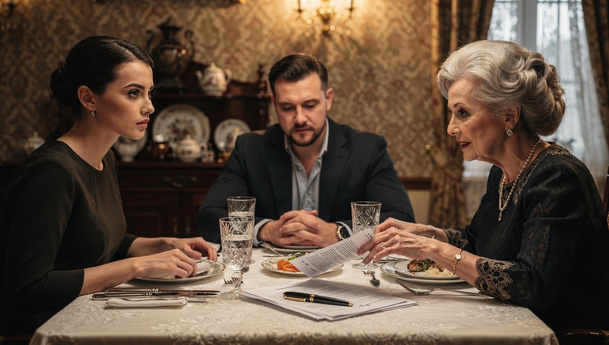 Тишина упала на стол, как чугунная сковорода. Борис Аркадьевич замер с бумагами в руках. Андрей побледнел. А свекровь — свекровь не изменилась в лице. Только глаза стали чуть уже, как у хищника, которого заметили раньше, чем он рассчитывал.