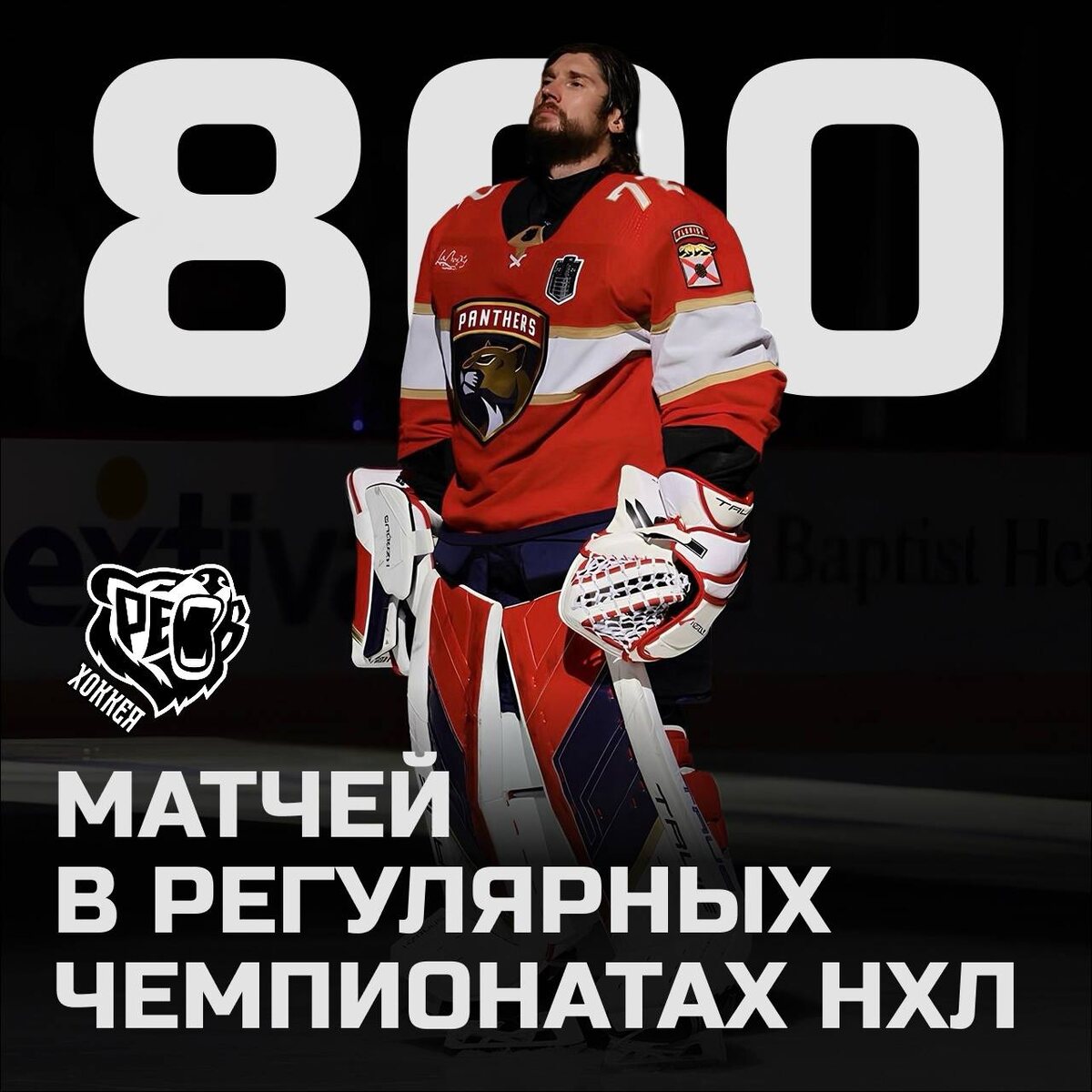 ! Сергей Бобровский провёл свой 800‑й матч в регулярных чемпионатах НХЛ, став первым российским вратарём, кому покорилось это выдающееся достижение. ❤️ — Поздравляем! 🐻 Слышишь? ЭТО РЁВ ХОККЕЯ