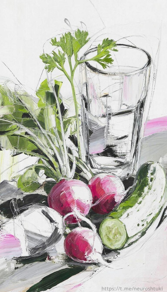 Все картинки ингредиентов для первых весенних салатов созданы в отечественном генераторе. Кое-где берёзовый сок налит прям в стакан из берёзы и совмещает функцию вазы для петрушки, но почему бы и нет.