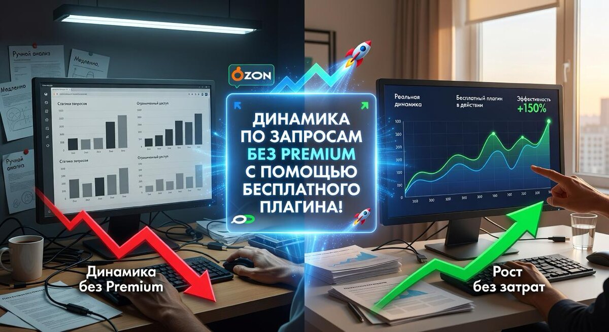 ! 📊В разделе Аналитика -> Поисковые запросы вы можете проверять популярность запроса за последние 7 дней без Premium. Чтобы увидеть динамику изменения спроса за 7 и 28 дней в цифрах и скачать данные в виде файла, нужна Premium Plus Подписка. 📍Есть ли бесплатное решение? Да — плагин Seller Helper. Он не только скачает данные, но и откроет динамику в цифрах! Так вы поймете реальный прирост или снижение спроса в вашей категории даже без Premium Lite. Пример на фото к посту. А какие плагины для OZON используете вы?