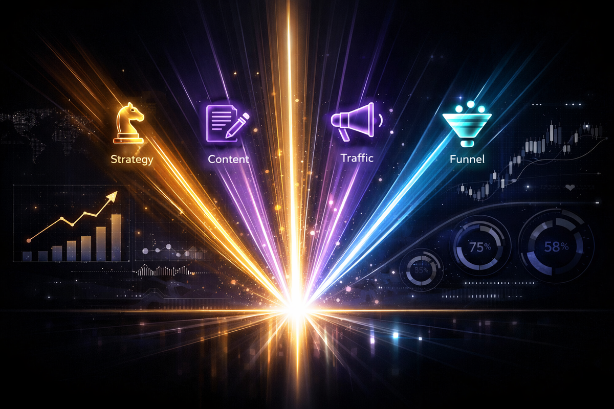 Именно в этой точке и появляется оркестрация. Это формат разбора бизнеса, при котором проект рассматривается сразу с нескольких сторон: через смысл, контент, трафик, воронку и аудит слабых мест. Каждая роль добавляет свой взгляд, убирает искажения и помогает увидеть не то, как бизнес видит себя, а то, как его воспринимает клиент. В результате становится видно главное — где именно теряется рост и что на самом деле нужно усилить.