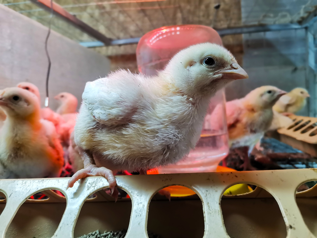 А вот и наши цыплята-бройлеры. Они достигают взрослой массы тела всего за 6–8 недель? Это настоящие рекордсмены по скорости набора веса и любители вкусно покушать!