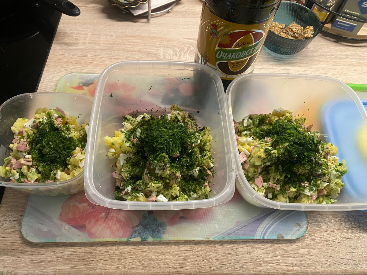 Я же вчера поужинав окрошкой, так было вкусно, решила с вечера сварить овощи и утром сделала своим взрослым детям окрошки, разложила всё в контейнеры, взяла с собой бутыль кваса, майонез и поехала развозить гостинцы.)))