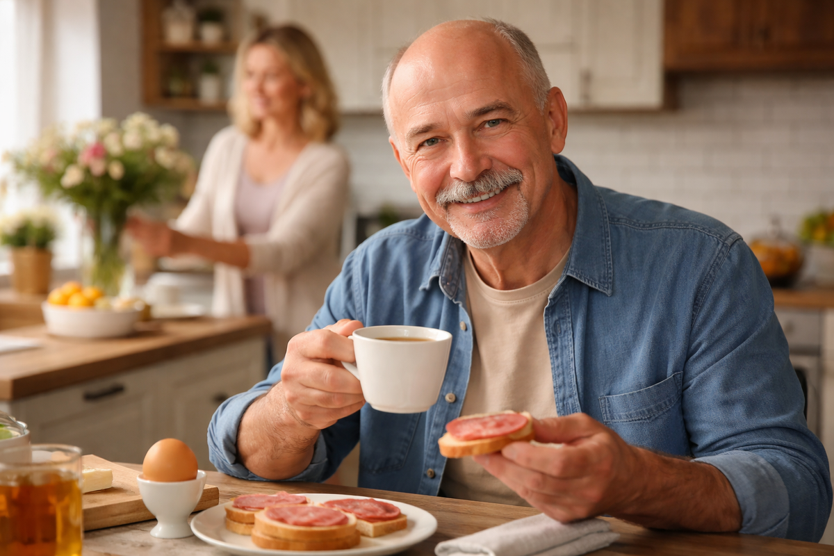 Галина села напротив. Налила себе чаю. Отрезала кусок пирога — себе, потом ему. Поставила тарелку перед мужем.