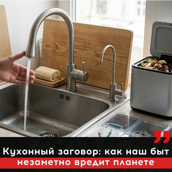 Мы привыкли винить в экологических проблемах крупные заводы и транспорт, но настоящая «горячая точка» находится гораздо ближе — прямо в наших квартирах. Обычная кухня является одним из самых мощных источников загрязнения, о масштабах которого мы редко задумываемся. 🔺Около трети всех закупаемых продуктов в мире отправляется в мусор. На свалках органика, перемешанная с пластиком, лишается доступа к кислороду и выделяет метан. Этот газ удерживает тепло в атмосфере в десятки раз эффективнее углекислого газа, становясь невидимым двигателем климатических изменений. 🔺Ежедневное использование синтетических губок и дешевых пластиковых досок приводит к тому, что в сточные воды и нашу пищу попадают тысячи микрочастиц полимеров. По статистике, за неделю человек может «съедать» количество пластика, сопоставимое по весу с банковской картой. 🔺Привычка мыть посуду под проточной водой без специальных насадок увеличивает расход ресурса на 40–60%. Большая часть этой воды очищается и нагревается с о