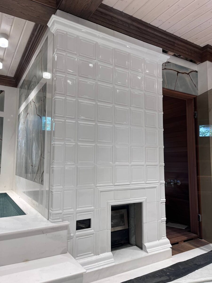 Отделка стены изразцами👌.