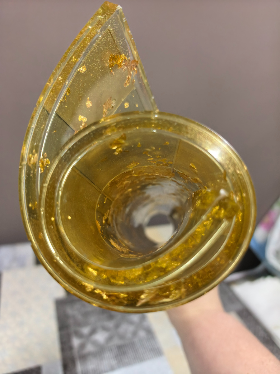 И что бы это такое могло быть непонятное? Это "доска" для шахмат из эпоксидной смолы. Мне подарили смолу для этикеток. Долго не доходили до неё руки и вот эксперимент завершился! Я с такой никогда не работала. Решила сначала сделать просто, втереть пигмент в клетки молда, потом залить. Жёсткой кистью втираю темно-серый сухой пигмент. Так как пигменты бронза и золото, ими и пробую. Теперь перехожу к золотым. Красиво и всё видно, но дальше думаю надо было не прозрачную смолу ,а белым молоком залить(добавить сухой белый пигмент), и ещё свою любимую поталь запустила для красоты, креативничала. В общем в следующий раз белым обязательно сделаю-это же был эксперимент! Сушка длилась три дня, но что мне особенно понравилось -это возможность скрутить "доску". И она потом на поверхности расправляется моментально и даже не двинуть, как бы фиксируется. Играли уже на ней, поверхность чудная, шахматы не скользят! Только думаю, что с белым молоком заливка смотрелась бы круче. Толщина "доски" получила