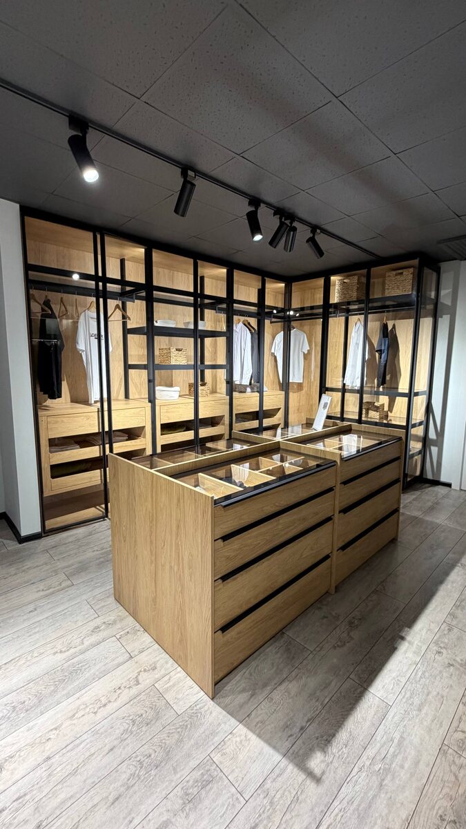 Когда у каждой вещи есть своё место, день начинается спокойнее Остров с выдвижными ящиками помогает удобно хранить аксессуары, одежду и всё, что хочется держать под рукой Дополнительная подсветка делает пространство ещё уютнее и подчёркивает детали интерьера 🤍 Стеклянные двери в алюминиевой рамке добавляют гардеробу лёгкость и современный характер, а внутренние выдвижные ящики для одежды и обуви помогают сохранить порядок каждый день Качественные материалы, продуманный дизайн и долговечность — мебель, которая остаётся актуальной на годы Если хотите такую гардеробную для своего пространства — напишите нам🤍 📱Telegram - консультация