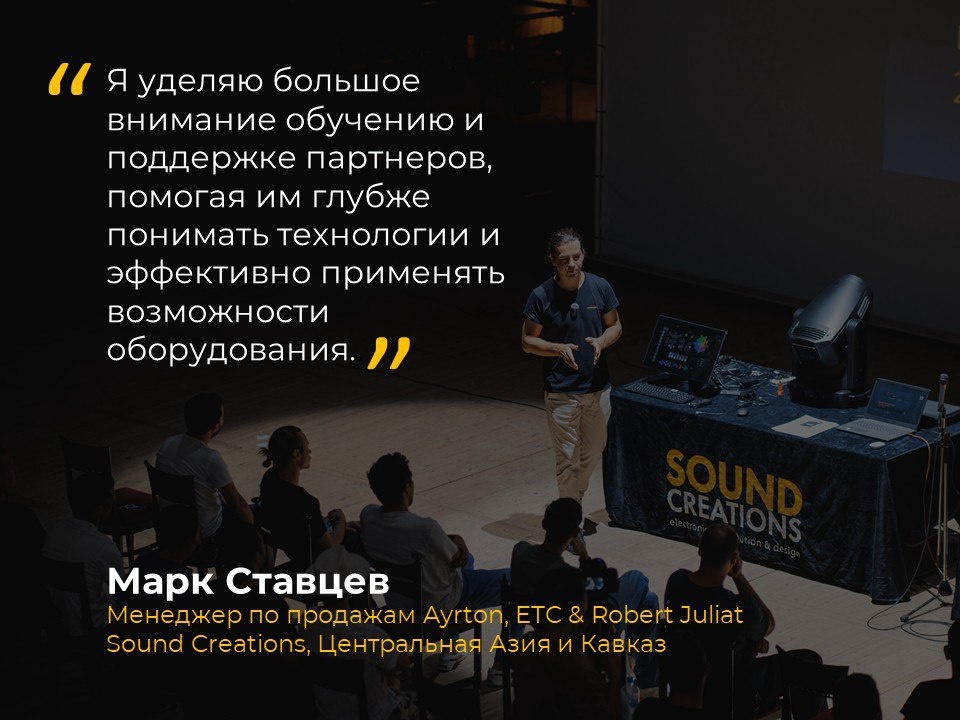 Современные световые системы становятся всё более технологичными и способны решать очень сложные задачи. Но по-настоящему они раскрываются только тогда, когда специалисты за пультом хорошо понимают возможности оборудования и умеют с ними работать. Именно поэтому обучение и обмен опытом остаются важной частью профессиональной среды. «Я уделяю большое внимание обучению и поддержке партнёров, помогая им максимально раскрыть возможности оборудования. В ближайшее время запланирована обширная программа обучающих мероприятий, о которых мы начнём активно рассказывать. Часть мероприятий пройдёт в новом пространстве Immersive Lab. Буду рад увидеть специалистов индустрии света, художников по свету и инженеров», — комментирует Марк Ставцев. Оборудование — это инструмент. Мастерство — всё остальное. #ayrton #etc #robertjuliat