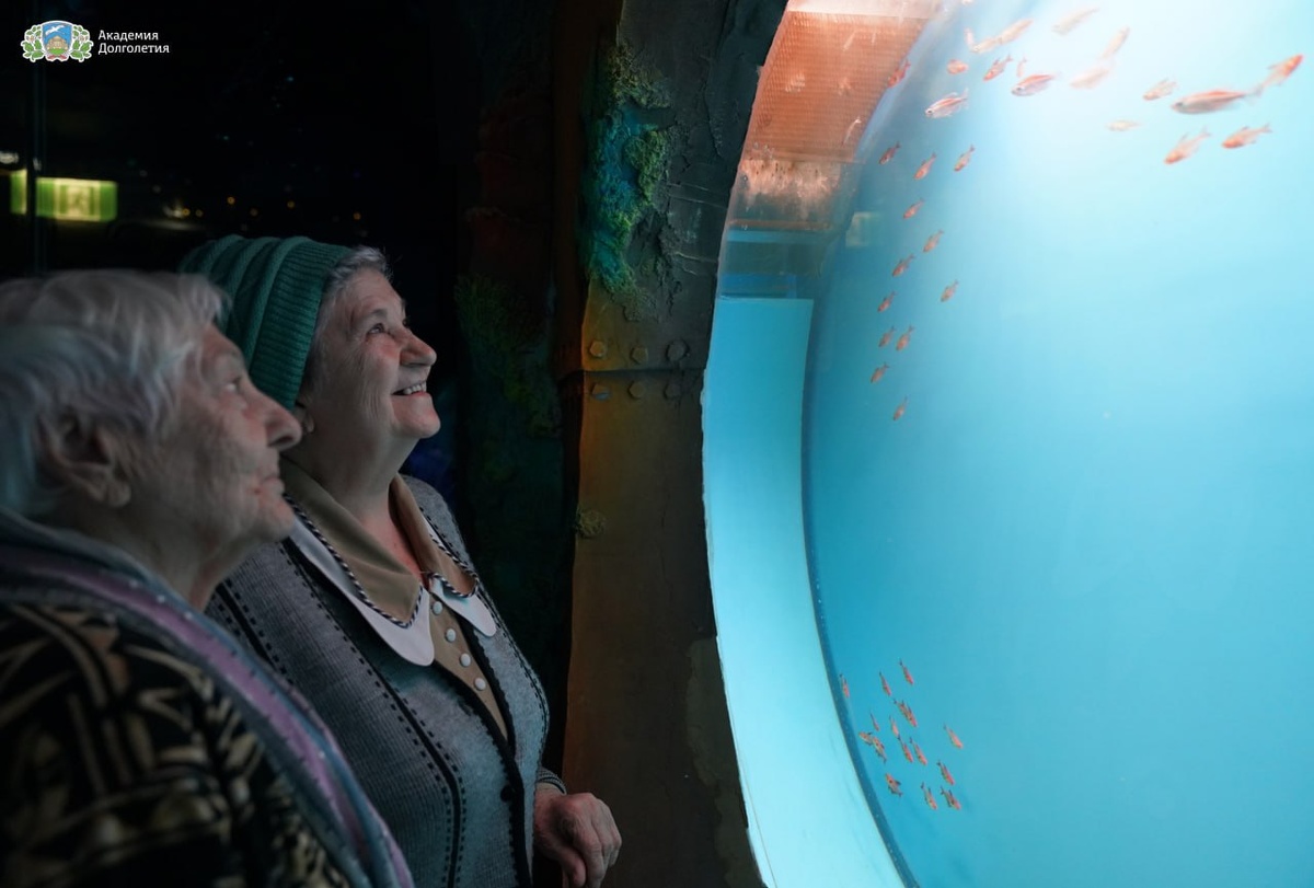 ? 📖🌊 В рамках выездных мероприятий наши активные долгожители посетили океанариум. Перед их глазами предстали пёстрые стайки рыб, внушительные сомы, черепахи и акулы. Наши подопечные вспоминали свои путешествия к морю и с удовольствием кормили морских обитателей. В «Академии Долголетия» мы не только заботимся о здоровье, но и ежедневно дарим нашим подопечным яркие эмоции и вдохновение для новых открытий! ✨