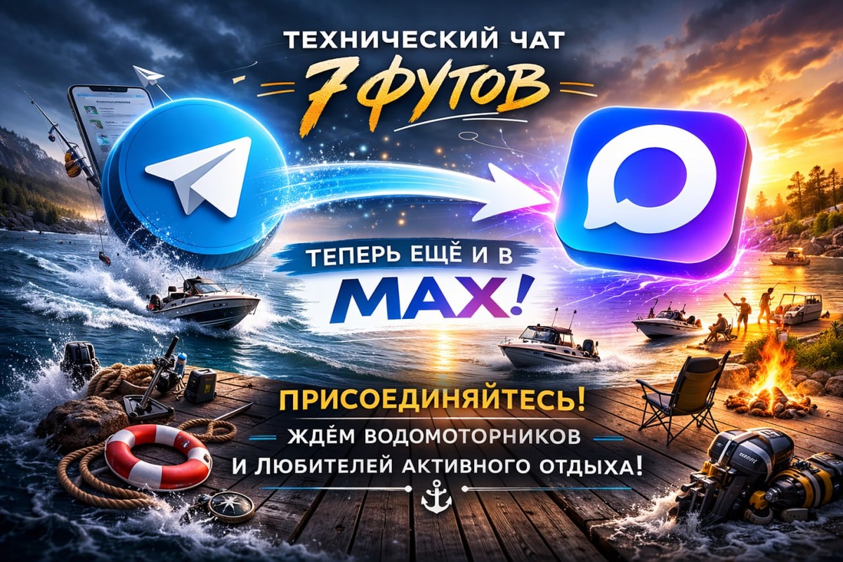 Чтобы оставаться на связи и не терять общение, наш технический чат «7 футов» теперь доступен еще и в МАХе 👇 ЖМИ МЕНЯ . ❗️В телеграм ЧАТ "7 футов" сохраняется и продолжается❗️ Ждём водномоторников, любителей активного отдыха и всех, кому близка наша тема ⚓️ Не теряемся - переходим на запасной канал связи 👍
