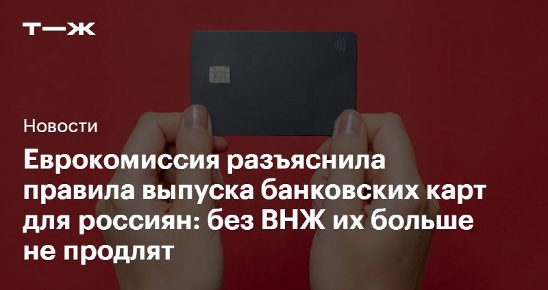 : 🔶 Запрет на выпуск и продление банковских карт Выпустить новую, заменить или продлить старую карту европейского банка смогут только россияне, у которых есть вид на жительство или право на постоянное место жительства в одной из стран Европейского союза, Европейской экономической зоны или Швейцарии. 🔹 Запрет на использование сервисов-посредников для платежей Российские клиенты больше не смогут оплачивать покупки через сторонние финтех-сервисы, которые подключаются к их банковским счетам. 🔸 Запрет на обработку транзакций для компаний, зарегистрированных в России Такие компании не смогут использовать POS-терминалы для приема карт на кассах или настроить онлайн-оплату на сайтах. Подробнее: https://t-j.ru/inv-tg/ec-ruling-cards/