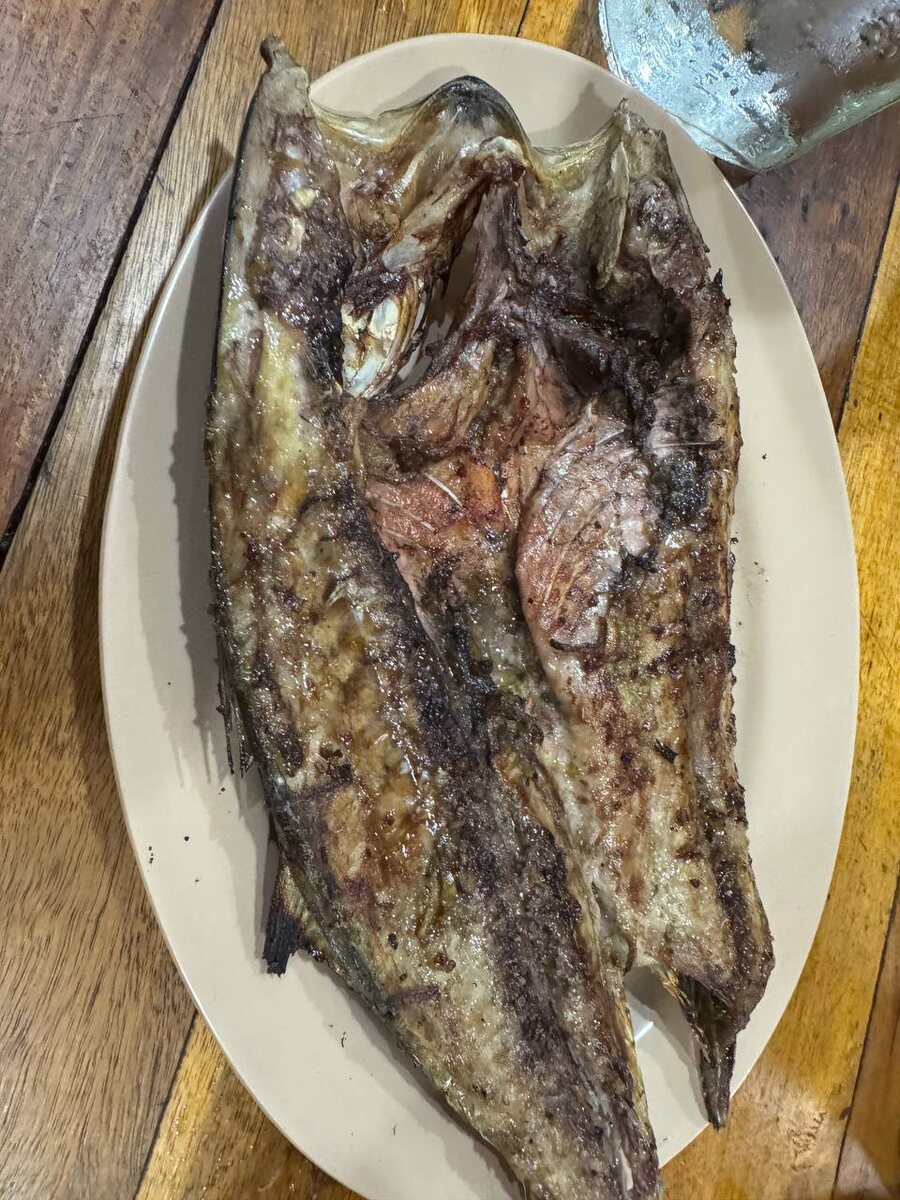 🐚 На острове можно поесть свежайшую рыбу и морепродукты очень бюджетно. Мы попробовали: Целый тунец на гриле — всего 250₽! Идеально прожаренный, сочный, с дымком от углей. Неизвестную рыбку, тушенную с овощами и ананасами в кисло-сладком соусе — 750₽. Нежное филе в компании перца, помидора, лука и кусочков ананаса — просто восторг! И конечно же креветки, каких тут только нет)) Приготовление — на высшем уровне. Рыбу здесь умеют готовить: не пересушивают, сохраняют сочность и естественный вкус 🐠🍍 В Малайзии мы не нашли такого разнообразия, качества и цен. На Ко Липе же богатый выбор «мореков» по демократичным ценам. От уличных ларьков до прибрежных ресторанчиков — везде свежее и вкусное. Да, жильё на острове дорогое. Но если хочется бюджетно и вкусно поесть — Ко Липе вас точно не разочарует. Рыбное изобилие и тайское гостеприимство сделают ваш ужин особенным. А вы любите морепродукты? Где пробовали самую вкусную рыбу в путешествиях? Делитесь в комментариях! 🐠 #КоЛипе #Тайла