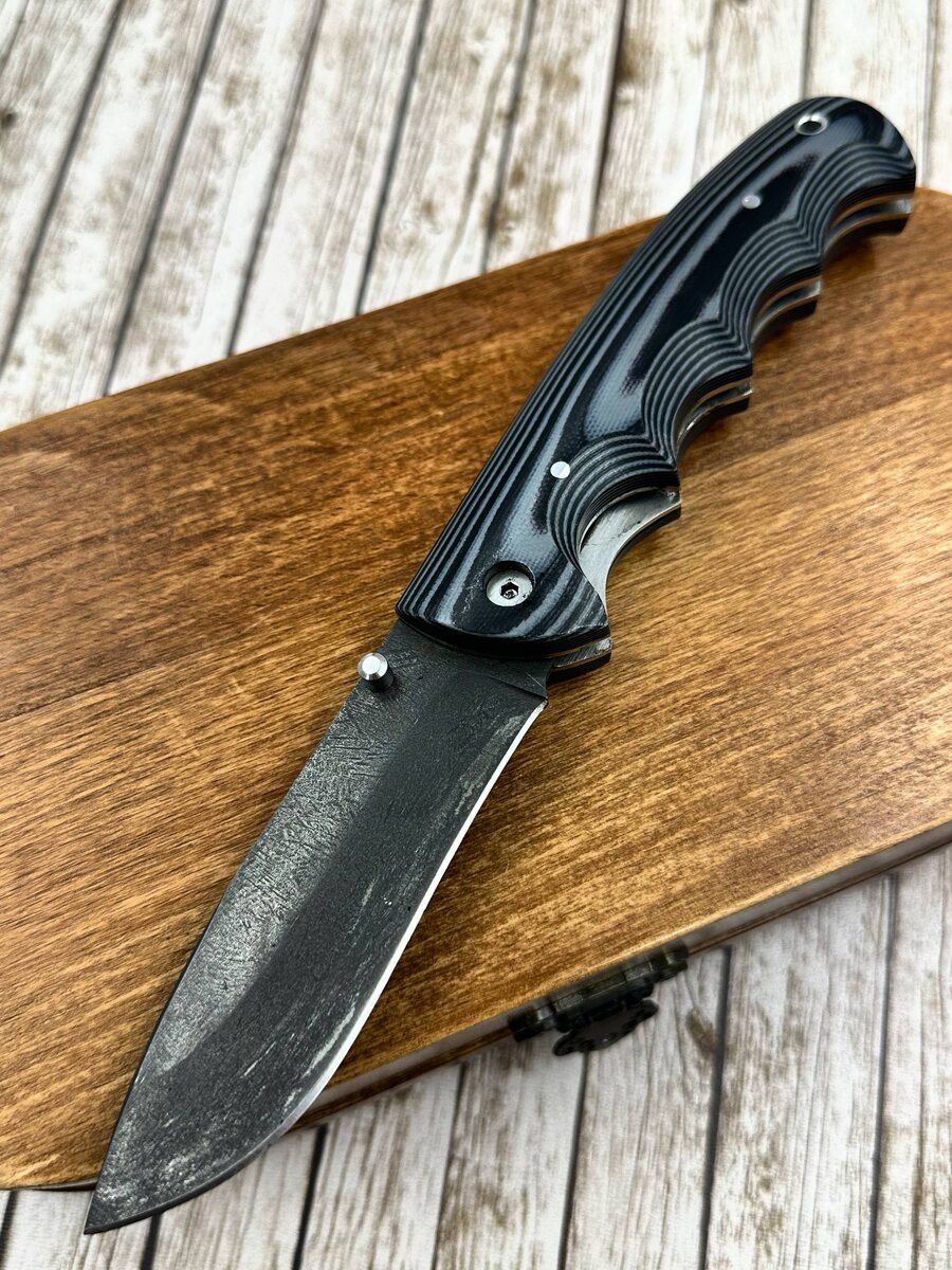 Удобный охотничий складной нож. Носик у ножа приспущен для быстрого и удобного шкуривания ножом. Спуски идут от середины клинка, что делает нож более прочным при боковых нагрузках. Накладки на ноже выполнены из G10 серой, не скользит в руке и долговечная. Анатомическая форма рукояти. Нож заточен в бритву, микроподвод 0.2 мм. Твердость клинка (HRC): 62 Цена за нож: 13.838 рублей, со скидкой: 12.454 рублей. В комплекте идут ножны из натуральной кожи. Можем сделать формованные ножны +8000 рублей. Для заказа писать на @Nazarklinokbot или по тел +79101343831 WhatsApp/Viber