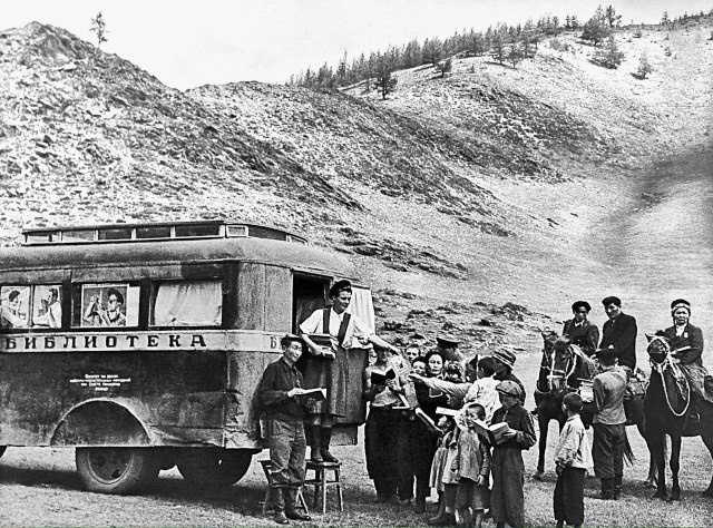 ΠΎΠ·Π΅ Β«ΠΡΡΠ½Ρ ΠΡΡΠ»Β» (Β«ΠΠΎΠ²ΡΠΉ ΠΏΡΡΡΒ»), ΠΠ½Π³ΡΠ΄Π°ΠΉΡΠΊΠΈΠΉ Π°ΠΉΠΌΠ°ΠΊ ΠΠΎΡΠ½ΠΎ-ΠΠ»ΡΠ°ΠΉΡΠΊΠΎΠΉ Π°Π²ΡΠΎΠ½ΠΎΠΌΠ½ΠΎΠΉ ΠΎΠ±Π»Π°ΡΡΠΈ, 1950-Π΅ Π³ΠΎΠ΄Ρ. ποΈπ Π ΡΠ΅ Π²ΡΠ΅ΠΌΠ΅Π½Π° Π±ΠΈΠ±Π»ΠΈΠΎΡΠ΅ΠΊΠΈ Π½Π΅ ΡΡΠΎΡΠ»ΠΈ Π½Π° ΠΌΠ΅ΡΡΠ΅ β ΠΎΠ½ΠΈ ΠΏΡΡΠ΅ΡΠ΅ΡΡΠ²ΠΎΠ²Π°Π»ΠΈ. Π‘ΠΏΠ΅ΡΠΈΠ°Π»ΡΠ½ΡΠ΅ Π°Π²ΡΠΎΠΌΠΎΠ±ΠΈΠ»ΠΈ ΠΈΠ»ΠΈ ΠΏΠΎΠ²ΠΎΠ·ΠΊΠΈ Ρ ΠΊΠ½ΠΈΠ³Π°ΠΌΠΈ Π΄ΠΎΠ±ΠΈΡΠ°Π»ΠΈΡΡ Π΄ΠΎ ΡΠ°ΠΌΡΡ