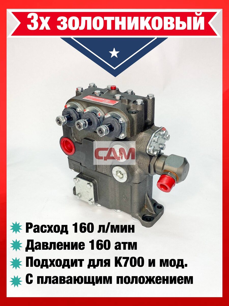 Гидрораспределитель Р160 (МЗТГ) для тракторов К-700, Т-130 | Управление гидравликой Гидрораспределитель серии Р160 производства МЗТГ — это надежный моноблочный узел, предназначенный для управления потоком рабочей жидкости в гидросистемах тяжелой сельскохозяйственной и промышленной техники. Данная модель является эталонным решением для тракторов К-700 (Кировец) и Т-130, гарантируя точное выполнение операций навесным оборудованием даже при экстремальных нагрузках. Назначение и применение Гидрораспределитель Р 160 - 3/1 - 111 (Т-130) "МЗТГ" (160 бар, самост.работа, подъем/опуск без фикс, плав с фикс) Устройство работает в паре с гидронасосами производительностью до 160 л/мин и решает три основные задачи: 1. Распределение потока масла между гидроцилиндрами (подъем, опускание, плавающий режим). 2. Автоматическая разгрузка насоса путем перевода потока в бак при нейтральном положении золотников. 3. Защита системы от перегрузок за счет встроенного предохранительного клапана . Технические