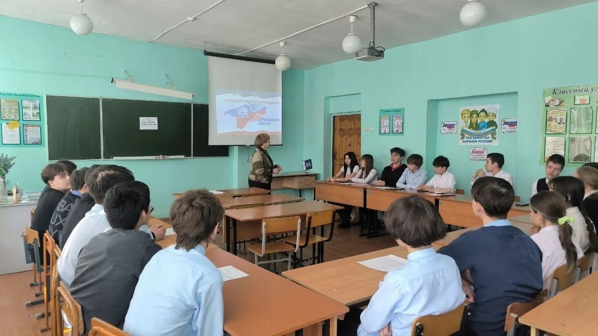 Ребята представили аргументы об исторической принадлежности полуострова и посмотрели фильм «Крымская весна» В средней школе села Красный Яр состоялось заседание дискуссионного клуба «Русское слово», приуроченное к 12-й годовщине воссоединения Крыма с Россией. Мероприятие прошло в формате открытой дискуссионной площадки, цель которой — помочь учащимся сформировать собственную активную позицию в оценке событий Крымской весны. Модератором встречи выступила главный специалист Русского центра «Красный Яр», диалог получился живым и содержательным: ребята не просто слушали, но были полноправными участниками обсуждения, представляя свои аргументы, доказывающие историческую принадлежность Крыма России. В центре внимания оказались важнейшие вехи истории: роль императрицы Екатерины II в освоении Тавриды в XVIII веке, значение Черноморского флота для безопасности и славы России, причины, по которым Крым более 20 лет находился вне состава РФ, и события, приведшие к историческому референдуму 16 март