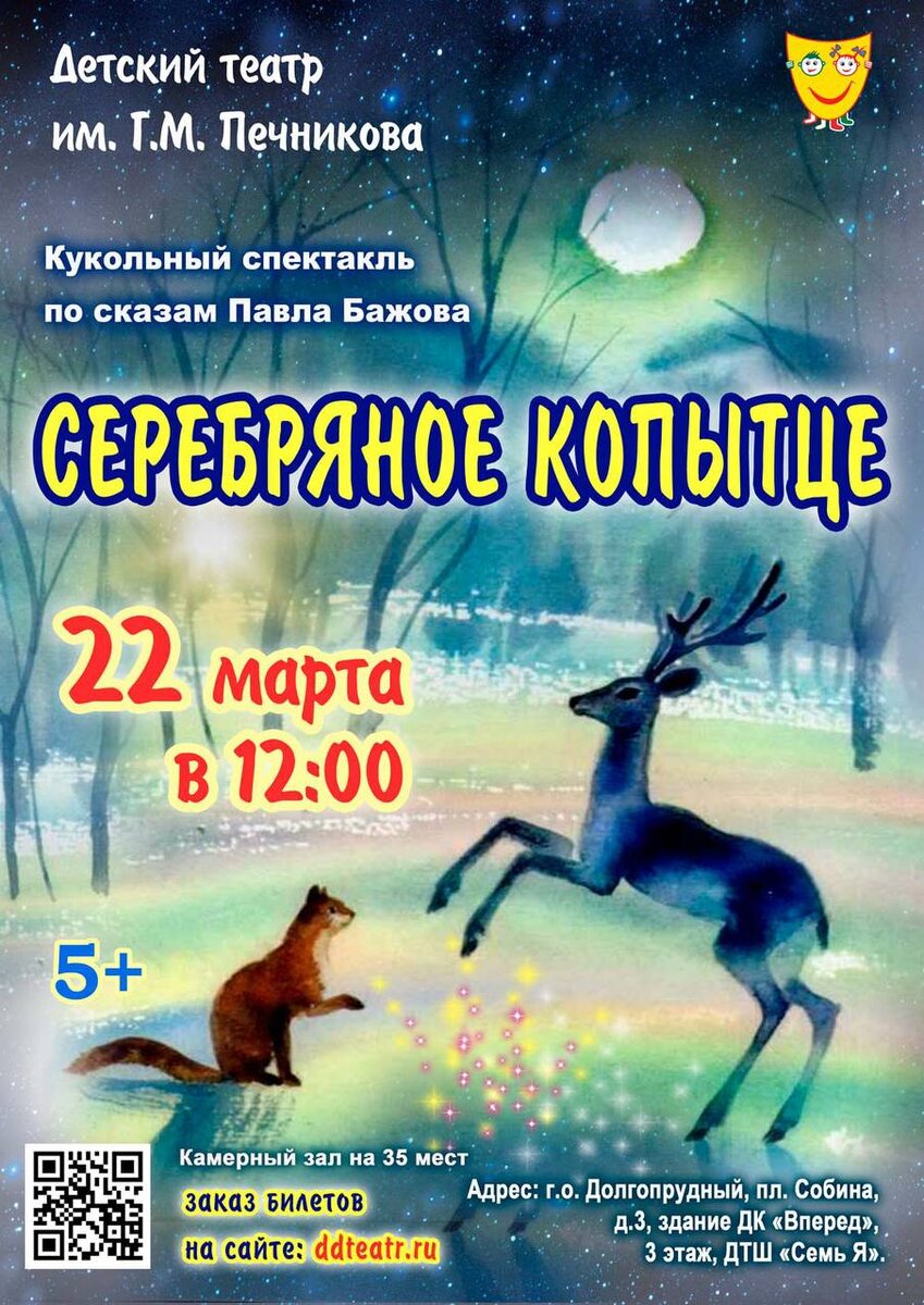 !✨ Спектакль «СЕРЕБРЯНОЕ КОПЫТЦЕ» 🤩 🌟22 марта в 12:00 Приглашаем вас на кукольный спектакль по сказам Павла Бажова. Наш сказ о добром охотнике Коковане, маленькой сиротке Дарёнке и её кошке Мурёнке. А еще о волшебном козлике Серебрянoе кoпытце - в каком месте козлик топнет правым копытцем, там и появится камень драгоценный. И о маленькой лесной волшебнице Огневушке-Поскакушке - где она попляшет, там и золото спрятано.✨ Только увидеть Серебрянoе кoпытце и Огневушку-Поскакушку не всякому удаётся, а вам удастся? 📍Камерный зал, 35 мест, свободная рассадка. ✅Заказ билетов https://iframeab-pre5847.intickets.ru