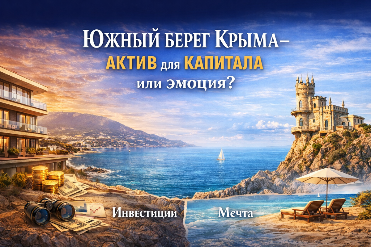 Террум+ | Март 18, 2026 Южный берег Крыма — это не просто география, это статус. Ограниченная линия побережья, где физически невозможно бесконечно строить. Горы с одной стороны, море с другой, земли мало. И именно это делает Южный берег Крыма особенным рынком. Покупка на Южном берегу — это инвестиция или просто красивая мечта? Давайте разберёмся! Локация физически ограничена. Новых участков у первой линии почти нет. Это создаёт естественный дефицит. А дефицит в долгую почти всегда работает на рост цены. Южный берег Крыма — это бренд внутри бренда. Даже в сложные периоды спрос на Ялту, Алушту, Гурзуф остаётся выше, чем на менее известные курортные зоны. Статус поддерживает ликвидность. Регион стабильно показывает рост интереса со стороны внутреннего туризма. Турист — будущий покупатель или арендатор. Это основа экономики курортной недвижимости. В предыдущей статье мы подробно разобрали, как инвестиции в инфраструктуру влияют на рынок недвижимости Крыма. И в частности, затронули основные
