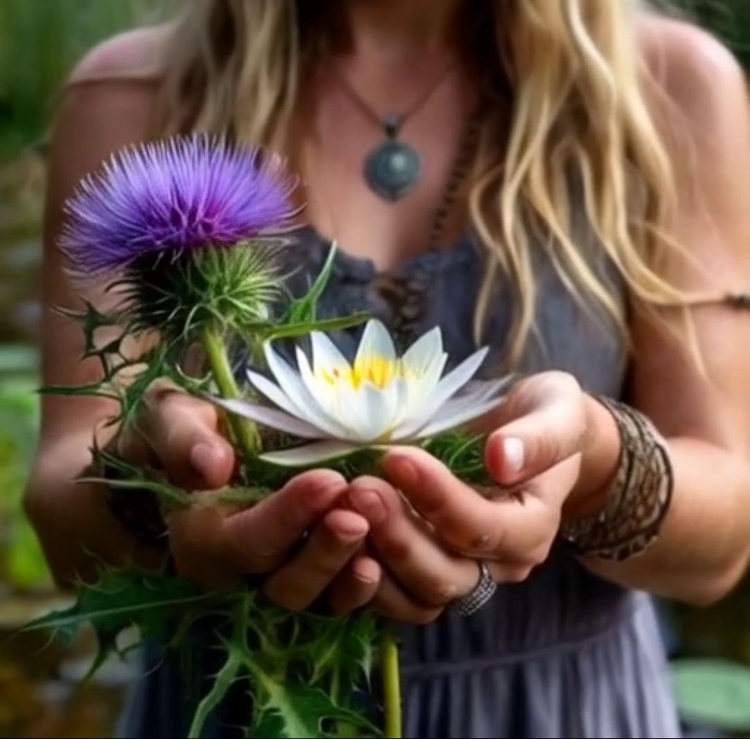 или почему наши пра-пра, отправляясь за тридевять земель, клали в лапоть лист подорожника, а у сердца носили колючий чертополох? Они не надеялись на авось. Дорога в старину была местом тонким: между миром людей и миром Нави. Там и леший мог закружить, и разбойник — подстеречь, а лихоманка — напасть на перепутье! Потому и собирали не просто котомку, а холщовый мешочек-ладанку. Травы-путники были оберегами почище любого сторожа! 🌿 Одолень-трава (то бишь кувшинка белая): её корень, добытый со дна родной реки носили на груди. Верили: одолеет любую преграду — одолеет и горы, и злых людей, и тёмный лес! 🌿 Подорожник: его имя говорит само за себя — попутник, спутник. В старых травниках наказывали: натирай им ноги перед дорогой — не будет устали. А лист, положенный в лапоть, снимает всю тяготу пути! 🌿 Чертополох: чертей полохает. В дорогу брали не само растение, а вощанку: кусочек воска, в котором на Святках варили чертополох. Считалось, что это лучшая стена от бесовского наваждения и