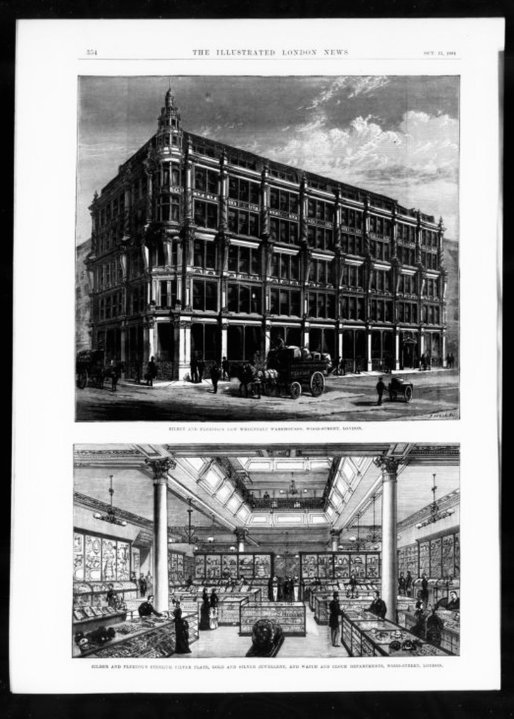 Ниже можно увидеть страницу «Иллюстрированных лондонских новостей» 1884 года с новым зданием фирмы и торговым залом в нём.