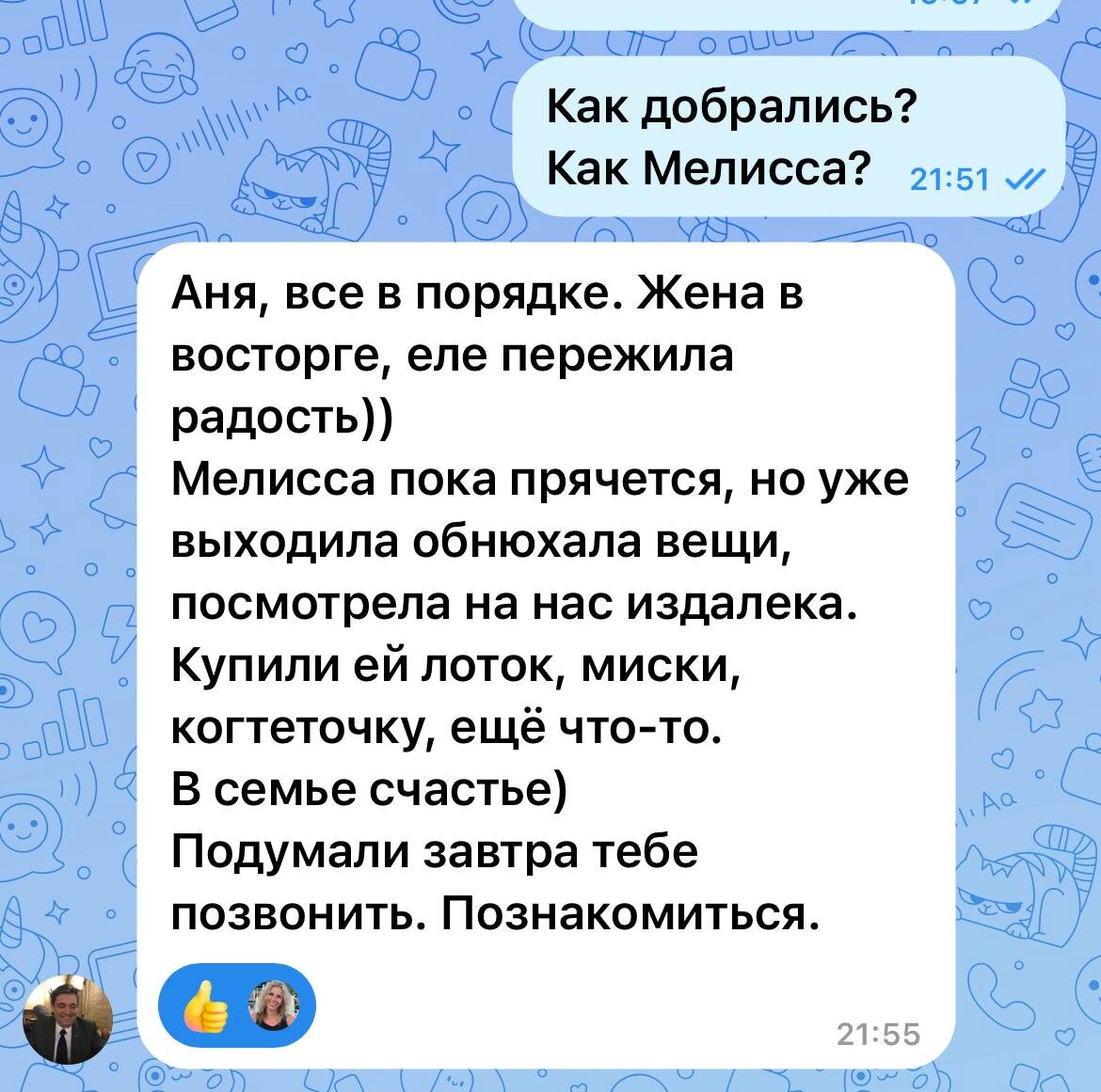 От Мелиссы пока приветов нет, она осваивается в новом месте.